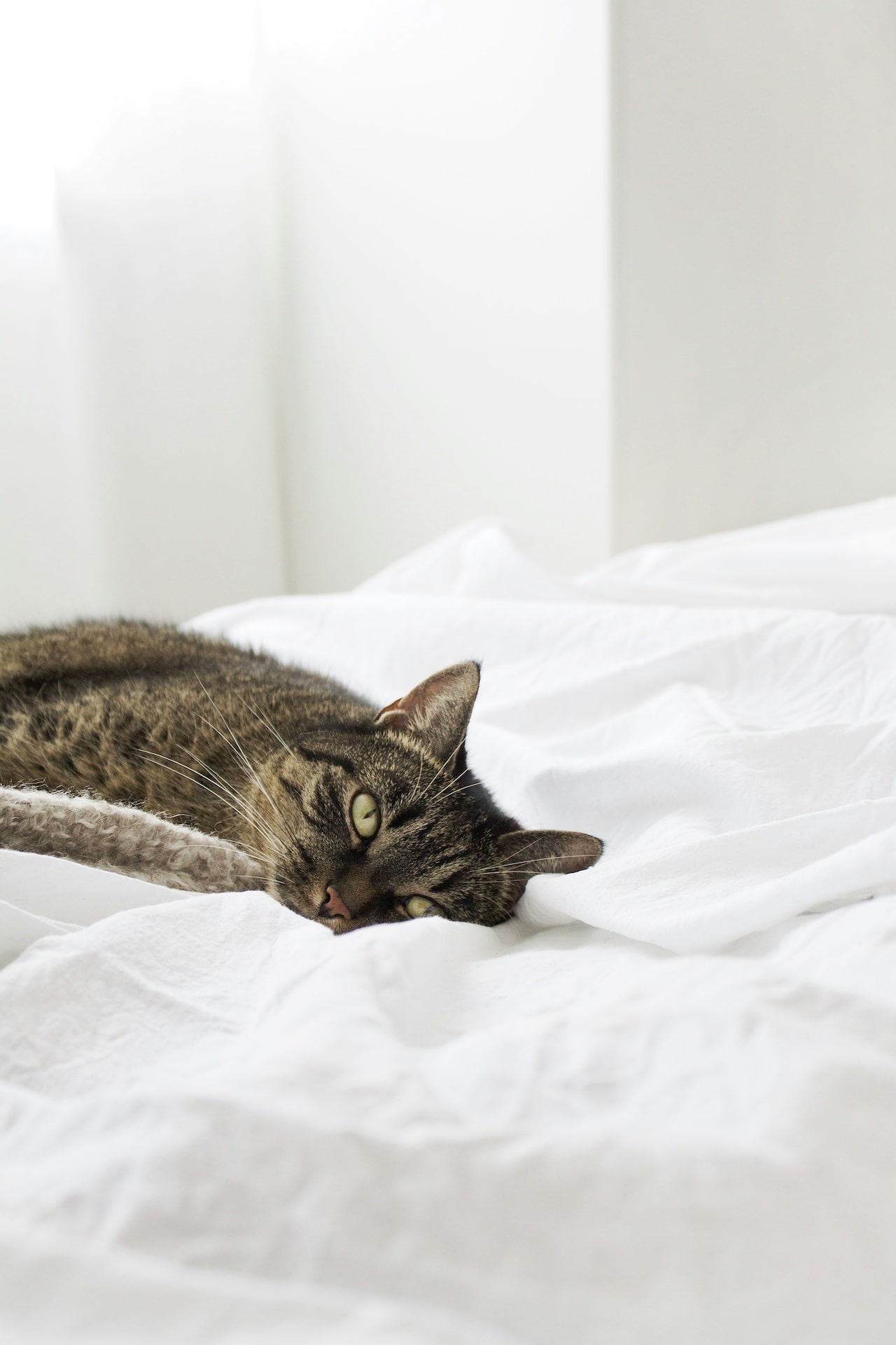 Photo by Sarah Dorweiler on Unsplash : cat on white blanket